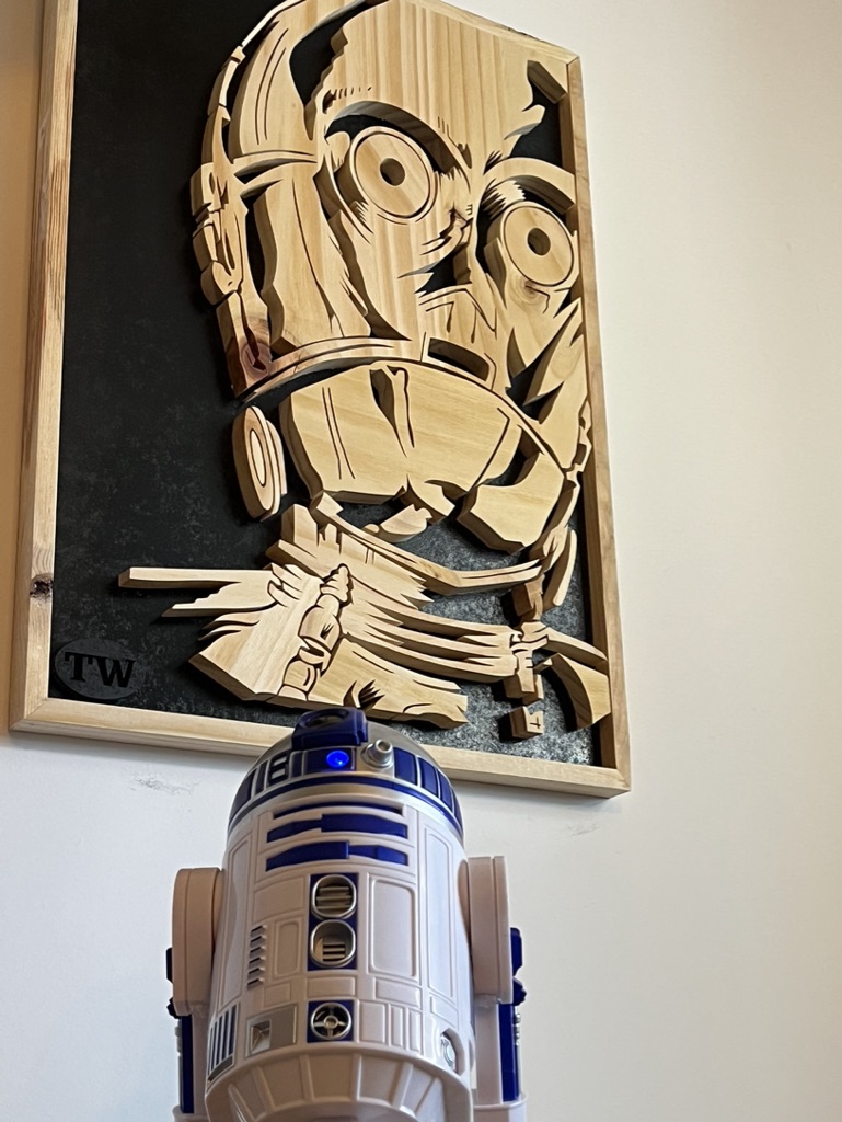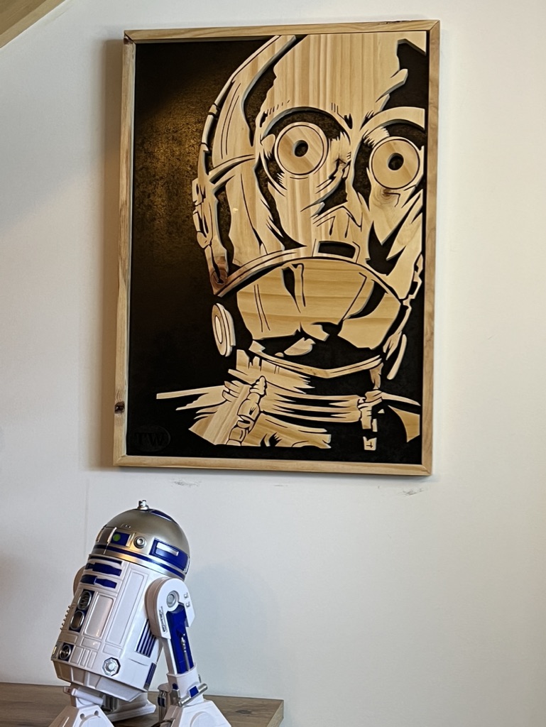 Inspiré de l’univers mythique de Star Wars : ce tableau bois rend hommage au célèbre robot C3PO