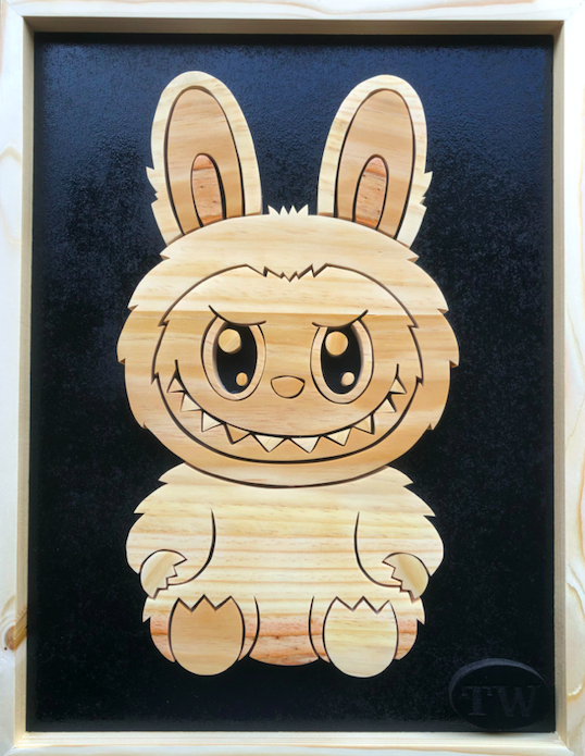 Plongez dans l’univers mystérieux et attachant du Labubu, icône du designer toy, réinterprété ici dans une oeuvre en bois unique. Réalisé en méthode mixte, ce tableau met en valeur la silhouette espiègle du personnage, avec ses grandes oreilles, son regard expressif et son charme étrange qui séduit les collectionneurs du monde entier.