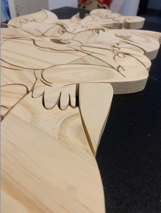 Cette pièce ravira autant les nostalgiques des dessins animés classiques que les amateurs d’art pop revisité en version bois.