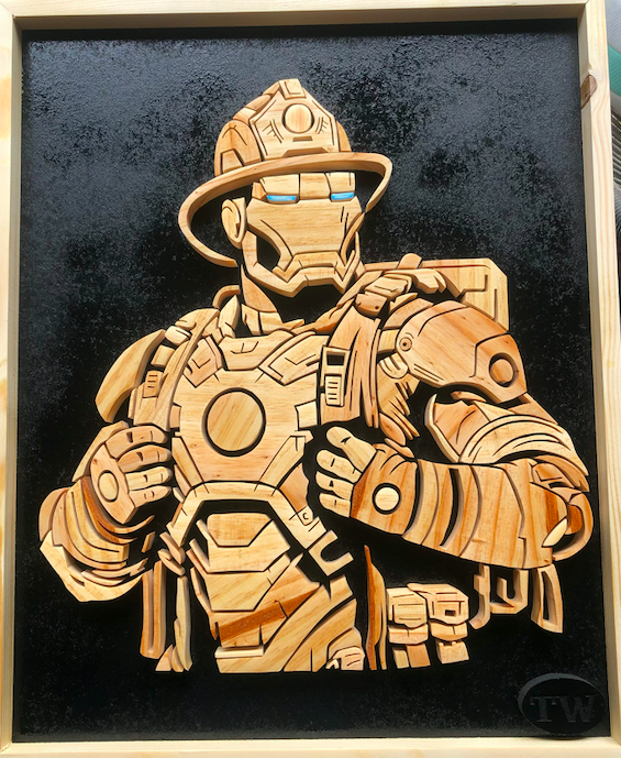 Découvrez une création héroïque ou l’univers Marvel rencontre l’engagement du quotidien. Ce tableau représente Iron Man revisité en pompier, équipé de son armure iconique réinterprétée avec les codes du secours.